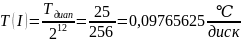 Преобразование 12ти разрядное, следовательно на одну дискрету.