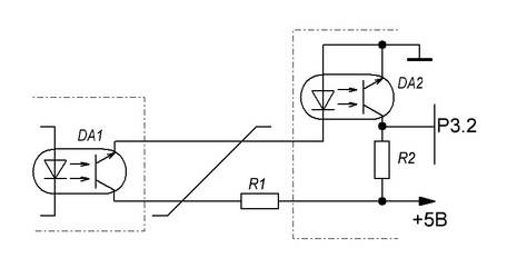 Резистор R2 обеспечивает потенциал 3В (при закрытом фототранзисторе) на входе Р3.2 при токе 1мА: