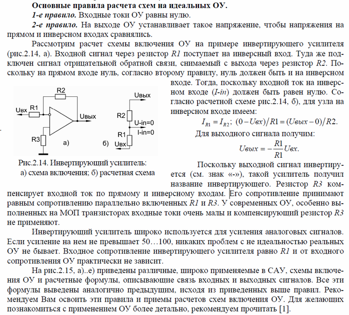 1. Правила расчета операционного усилителя на примере инвертирующего усилителя.