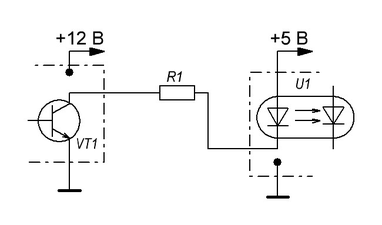 Подключить активный датчик с выходом «Открытый коллектор n-p-n» и питанием 12 В к контроллеру со входом «Открытый катод СД». Рассчитать балластный резистор светодиода, если анод подключен к 5 В номинальный ток светодиода – 12 мА.