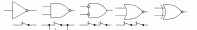На рис.2.19 приведены примеры типовых логических элементов. Вверху приведено обозначение вентилей в отечественной литературе и технической документации, ниже обо-значение, встречающееся в зарубежной литературе, еще ниже – контактно-релейный эквива-лент вентиля, далее – его логическая функция и, наконец, таблица истинности, описывающая