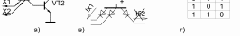 валент VT1 при низком уровне X1; г) таблица истинности ячейки.