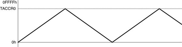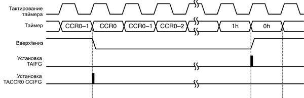 | 11 | Вверх/вниз | Таймер многократно считает от нуля вверх до значения в TACCR0 и назад до нуля. |