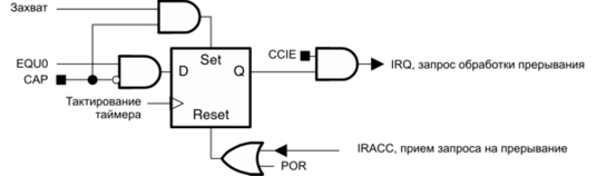В режиме захвата любой флаг CCIFG устанавливается, когда значение таймера зафиксировано в соответствующем регистре TBCCRx. В режиме сравнения устанавливается любой флаг CCIFG, если TBR досчитал до соответствующего значения TBCLx. Программное обеспечение может также устанавливать или очищать любой флаг CCIFG. Все флаги CCIFG запрашивают прерывания, когда установлены их соответствующие биты CCIE и бит GIE.