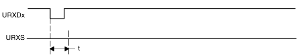 Когда URXSE, URXIEx и GIE установлены и на URXDx появился стартовый фронт, будет установлен внутренний сигнал URXS. После установки URXS будет сгенерирован запрос на прерывание при приеме, но URXIFGx не установится. Программное обеспечение пользователя в процедуре обработки прерывания приема может проверить URXIFGx для определения источника прерывания. Если URXIFGx=0, обнаружен стартовый фронт, а когда URXIFGx=1, был принят правильный символ (или разрыв).