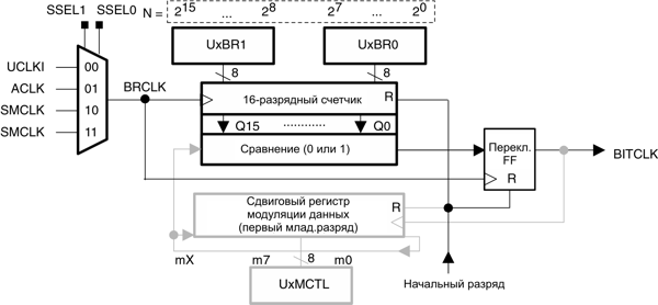 Скорость передачи = BRCLK / UxBR, где UxBR = [UxBR1, UxBR0]