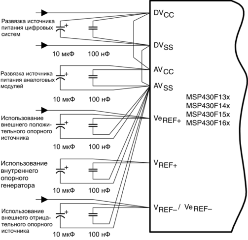 При выборе температурного датчика автоматически запускается расположенный на кристалле опорный генератор в качестве источника напряжения для температурного датчика. Однако это не включает выход VREF+ и не влияет на выбор опорного источника для преобразования. Процедура выбора источника для преобразования информации с температурного датчика подобна процедуре выбора для любого другого канала.