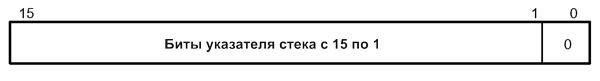 Указатель стека (SP/R1) используется ЦПУ для хранения адресов возврата из подпрограмм и прерываний. Стек основан на предекрементной постинкрементной схеме. Кроме того, указатель стека SP может использоваться со всеми командами и во всех адресных режимах. На рис.3.3 показана организация SP. Указатель стека SP инициализируется в ОЗУ пользователем и выравнивается к четным адресам.