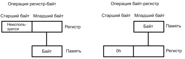 Рис.3-7 Операции регистр-байт / байт-регистр