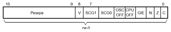 | CPUOFF | Выключение ЦПУ. Когда этот бит установлен, ЦПУ выключено. | ||||