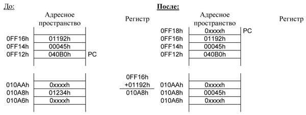 | 01 / 1 | Абсолютный (безусловный) режим | &ADDR | Слово, следующее за командой, содержит абсолютный адрес. X сохранен в следующем слове. Использован индексный режим X(SR) |