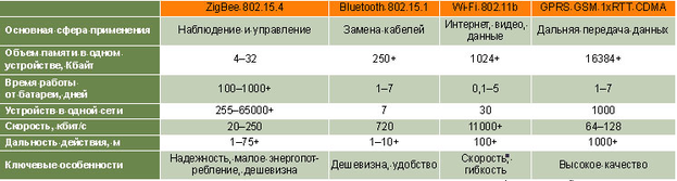 Хотя само по себе ZigBee-оборудование также не может обеспечить передачу данных на расстояние свыше 70-80 метров, оно может использовать в качестве туннеля для трафика каналы устройств Wi-Fi или Bluetooth, естественно, если они находятся в зоне видимости. Что касается энергопотребления, то, теоретически, одной небольшой батарейки должно хватать для поддержания работоспособности ZigBee-оборудования в течение нескольких месяцев и даже лет.