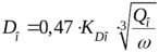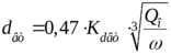 , ведётся по формуле приведённой выше. Значения диметра и скорости, полученные во втором приближении, отличаются от аналогичных, полученных в первом приближении на 3%, из этого следует, что их можно принять в качестве основных, не проводя дальнейшего уточнения.