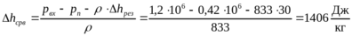 Удельная работа, затрачиваемая жидкостью при перетекании через уплотнение