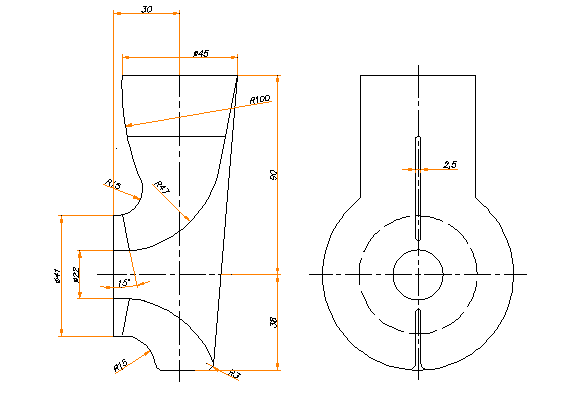 Ввиду неконсольного расположения насоса окислителя и малорасходности насоса был выбран кольцевой подвод с конфузорным участком для повышения скорости потока на 20% до 10 м/с. Геометрия подвода, согласно рекомендациям, представлена на рис.3.2:
