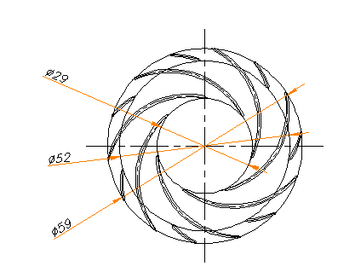 Для предотвращения загромождения лопатками вход в колесо необходимо произвести «подрезку» лопаток до среднего диаметра.