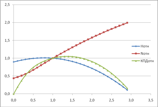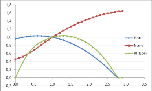 Рис.3.1. Диаграмма приведенных энергетических характеристик относительно приведенного расхода