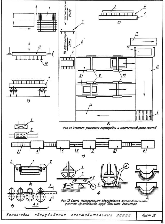 После прохождения линии очистки и грунтовки из накопителя 1 (лист 22, рис. 24, в) с горизонтальным шагом подачи листы подаются гидротолкателем в двусторонний кантователь 2, направляющий их дальше или на механическую, или на термическую резку.