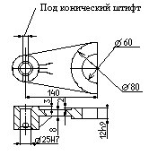 | Сверление и зенкерование отверстия, цекование торца Бобышки, зенкование фаски в отверстии, развертывание отверстия диаметром 25Н7 | Сочетание противолежащего торца бобышки и исполнительной поверхности вилки | |