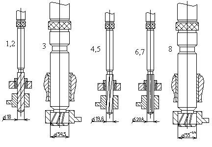 хемы наладок обработки отверстий на агрегатном станке (в массовом и крупносерийном производстве):