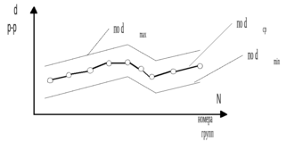 В случае построения по dср отчетливо видна периодичность изменения р-ров в результате непрерывно протекающего износа режущего инструмента и периодичность настроек станка.