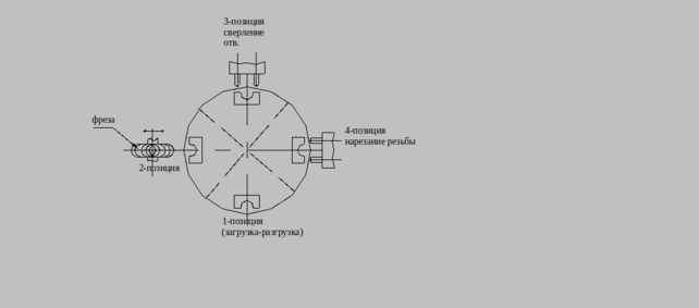 Параллельно-последовательные схемы возникают при одновременной обработке нескольких поверхностей заготовки и в нескольких последовательных позициях; заготовки меняют позиции, а инструменты закреплены в поворотной головке или барабане.