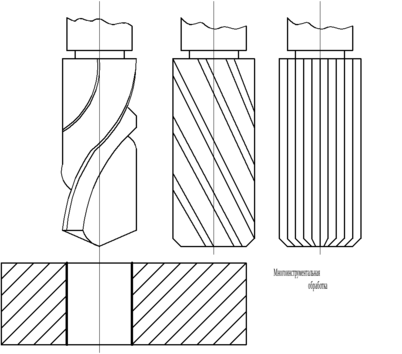 2.одноместная многоинструментная параллельная обработка/или параллельно-последовательная/. Параллельность выполнения переходов достигается применением набора инструментов, сборных и фасонных инструментов.