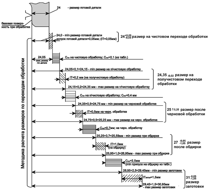 Расчет промежуточных размеров начинается всегда с размеров готовой поверхности.