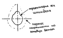 - При наличии погрешности вращения шпинделя (ввиду овальности шеек шпинделя), то на обрабатываемой детали будем иметь погрешность формы впоперечном сечении: