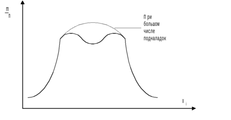 При трех подналадках будет три горба и т.д. Если подналадок очень много, то величина Н превращается в случайную и мы опять получаем нормальную кривую, но с большим значением .