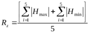2. Высота неровностей профиля по десяти точкам (Rz) - это сумма средних арифметически абсолютных отклонений точек пяти наибольших минимумов и пяти наибольших максимумов профиля в пределах базовой длины: