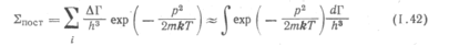 Поступательную сумму можно вычислить в квазиклассическом приближении, считая, что каждое состояние занимает объем h3 (где h — 2ħ — постоянная Планка). Тогда, исходя из понятия числа состояний в фазовом объеме с учетом распределения Максвелла, имеем