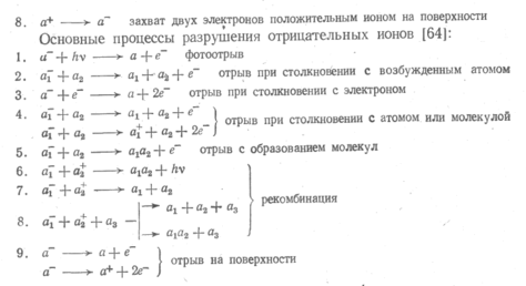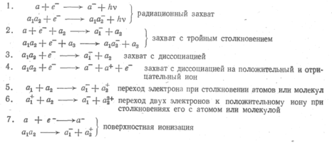Основные процессы образования отрицательных ионов [64]: