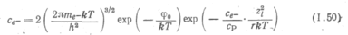 С помощью формулы (1.50) можно оценить влияние коденсированной фазы на электрофизические характеристики пламен. Она справедлива при высоких степенях ионизации конденсированных частиц, когда Ce-/Cр>1. Интересно отметить, что потенциал ионизации атомов углерода 11,256 эВ, а работа выхода электрона из графитовых частиц всего ~4 эВ, т. е. в некоторых системах конденсированная фаза продуктов сгорания может более эффективно поставлять свободные электроны, чем газовая фаза. Расчет концентрации электронов в пламенах при наличии конденсированных частиц осложняется недостаточной информацией о работах выхода электрона, концентрациях и функциях распределения конденсированных частиц по размерам.