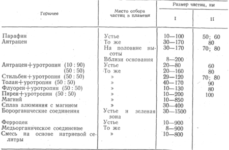 Таблица II.5. Размеры конденсированных частиц в пламенах