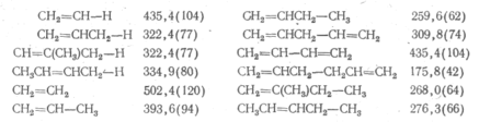 Ниже приведены значения энергий [в кДж/моль (ккал/моль) ] разрыва одинарных* связей в молекулах олефинов и диенов [8, с.15; 10]: