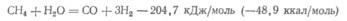 Конверсия метана парами воды. Реакции конверсии метана рассмотрены в работе [92, с. 108]. Лейбуш, Людковская [93, 94], изучая кинетику реакции взаимодействия метана с водяным па­ром без применения катализаторов в интервале температур 700— 1050 °С, установили зависимость константы скорости суммарного процесса от температуры (в мин-1):