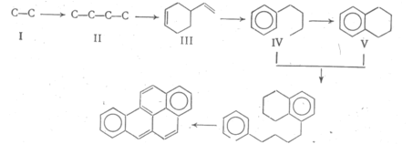 Представляет интерес схема Бэджера и др. [89, 90] (хотя она основана на исследованиях пиролиза, а не пламени) ступенчато­го синтеза полициклических ароматических углеводородов из ис­ходного соединения с двумя атомами: