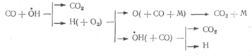 ри взаимодействии гидроксила с углеродом протекает цепная неразветвленная реакция
