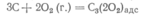 В случае хемосорбции на четырех центрах уравнения выглядят так же, как и в случае для трех центров. Аналогично можно рассмотреть схему механизма реакции С + О2. При высоких температурах (2000 К) СО2 заметно диссоциирует на СО, О2 и О. В работе [92] высказано предположение об активной роли молекулярного и атомного кислорода в механизме реакции С + СО2.