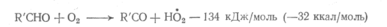 Последняя реакция при температурах 300—400 °С идет с измеримой скоростью вследствие относительно низкой энергии связи С—Н в альдегидах, по сравнению с углеводородами. Альдегид накапливается в системе за счет реакции основной цепи. Образовавшийся промежуточный продукт расходуется не только в реакциях, приводящих к образованию двух свободных радикалов, начинающих новые цепи. Он исчезает также в реакциях со свободными радикалами с образованием продуктов более глубокого окисления, например кислот. При этом, естественно, возникают новые радикалы и цепь продолжается. Наконец, особенно в случае перекисей, возможны побочные молекулярные реакции, например реакция