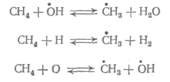 Сгорание метана на первой стадии определяется протеканием следующей цепной реакции: