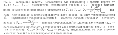равнение теплового баланса при горении пороха в конденсированной фазе можно записать в виде: