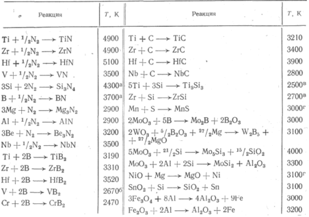 Таблица 1.4. Расчетные адиабатические температуры горения интерметаллических и термитных смесей [36]
