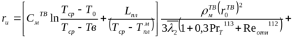 Смж, мж, r0ж — теплоемкость, плотность и радиус частицы металла в жидкой фазе.
