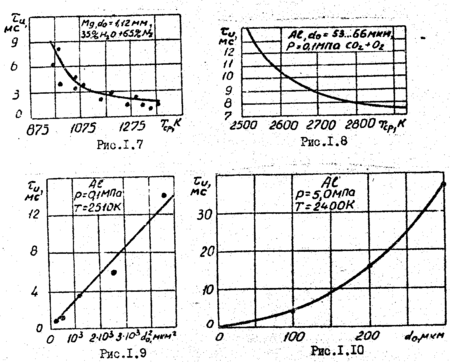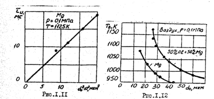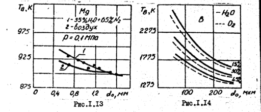 Tемпература воспламенения металлов, как и tu, зависит от начальных размеров частиц. Так, в экспериментальных иccлeдoвaниях [34 и 101] показано, что для частиц Mg, имеющего окисную пленку со слабыми защитными свойствами