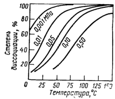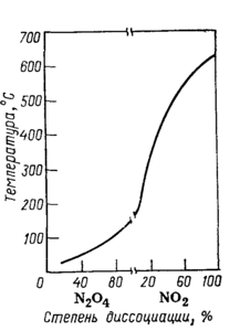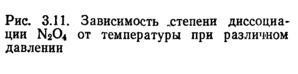 равновесную смесь оксидов азота. Состав смеси в сильной мере зависит от температуры и давления: с увеличением давления при постоянной температуре степень диссоциации, N2О4 уменьшается (рис. 3.11).