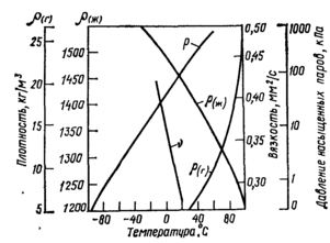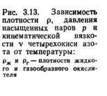 Зависимости плотности, давления насыщенных паров и вязкости четырехокиси азота от температуры показаны на рис. 3.13. Плотность окислителя в интервале температур от 0 до 21,15°С может быть вычислена по формуле [29]: