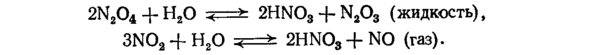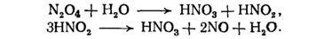 Растворяясь в воде, четырехокись азота вступает с ней во взаимодействие и образует азотную и- азотистую кислоты, т. е. представляет собой смешанный ангидрид этих кислот. Азотистая кислота HNO2 нестойка и разлагается с образованием HNO2 и N0: