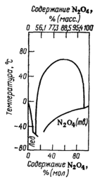 Жидкая четырехокись азота и вода ограниченно взаимно растворяются, что видно из зависимости, представленной